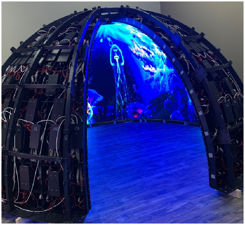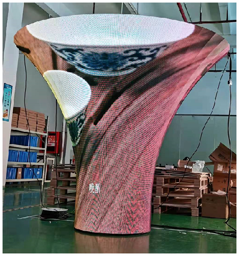 再結(jié)合模組磁柱+鋼結(jié)構(gòu)的高效率安裝方式。通過(guò)豐富多樣的鋼結(jié)構(gòu)設(shè)計(jì),可將SV(soft)柔性模組根據(jù)需要拼接弧形屏,圓柱,曲面等等創(chuàng)意顯示屏,打造顯示多元化。